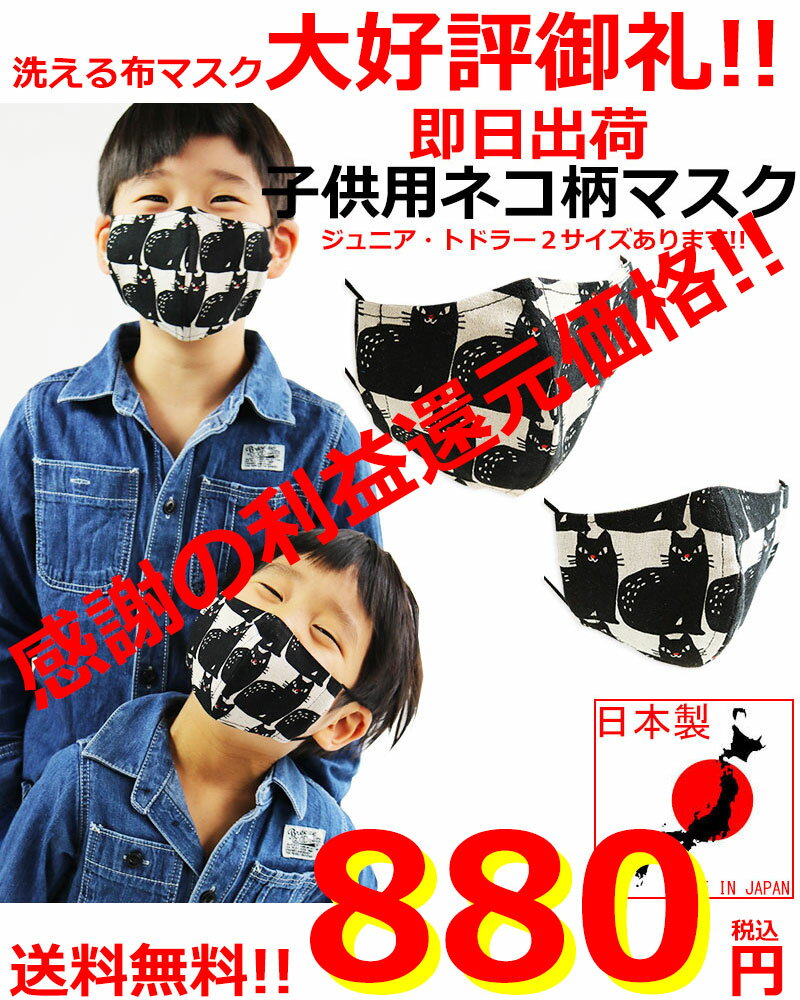 おしゃれマスク 子供 マスク 子供用 黒ネコ柄 麻 マスク 黒猫 日本製 幼稚園 小学生 布 洗える 洗濯 ファッションマスク